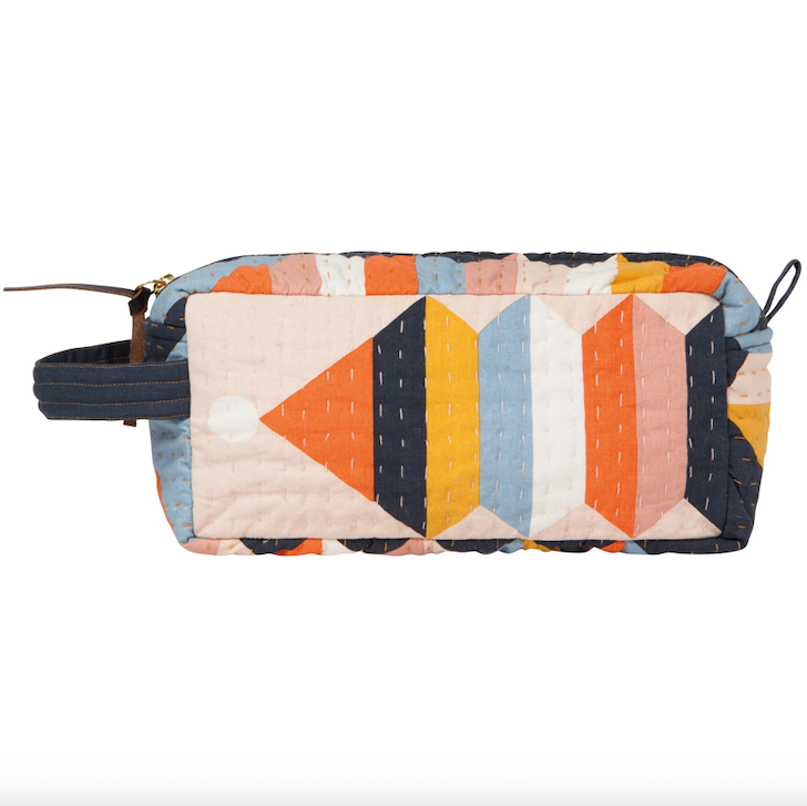 Quilting is given a modern refresh with the thoughtfully designed Dopp Bag. Embroidery-stitched by hand and made of 100% cotton, these bags are machine washable and durable. With a sewn-on handle, cosmetics, or other contents can be carried confidently. Dating back to the 1920s, the Dopp Bag was named after Charles Doppelt, the creator of the leather toiletry bags that were issued to soldiers in WWI. The kit bag soon became a mainstream staple for anyone who needed a reliable, portable place to pack their toiletries. Our Dopp Bag is a softer, friendlier reimagining of the classic bag yet offers the same thoughtful and durable design.