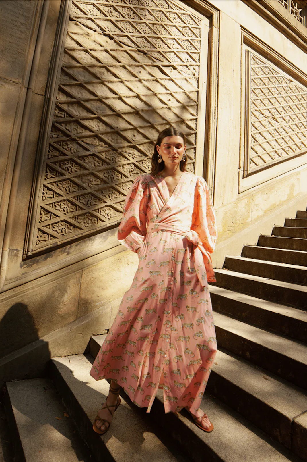 Our Monica Tiger Dress has great movement when you walk. The flowing and graceful style is inspired by our Latin American / Colombian heritage combined with elements of Indian culture. Every piece has been crafted with care and represents the eternal values of that tradition keep alive.