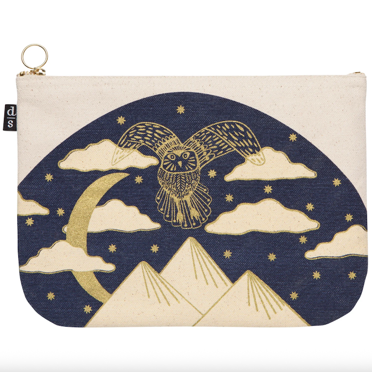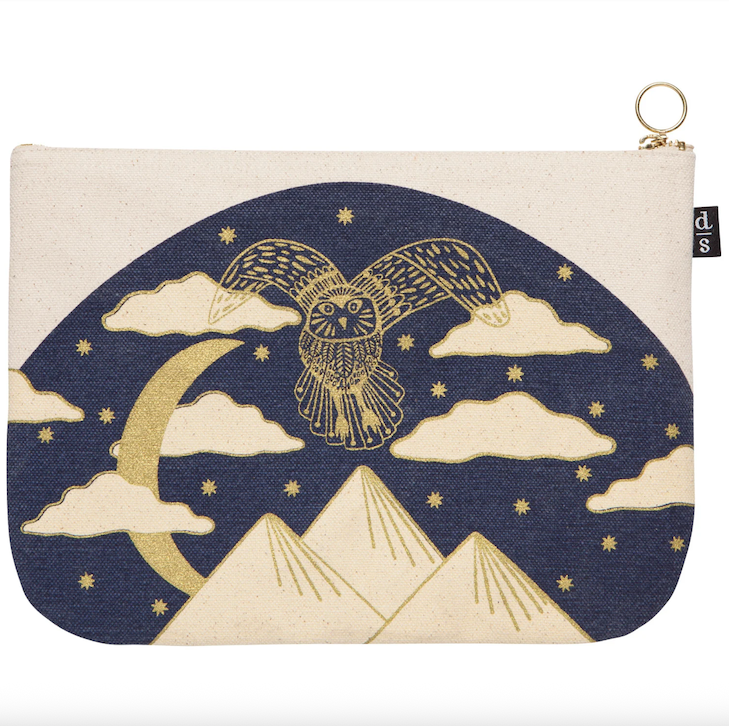 The Moonlit Large Zipper Pouch captures the mystical beauty of the night in a more compact form. Featuring an enchanting design of owls, moons, and stars in deep navy and gold, this pouch offers a convenient, stylish way to store your essentials. Its intricate details are a perfect reflection of the celestial wonder, and the secure zipper ensures your items are safely kept.